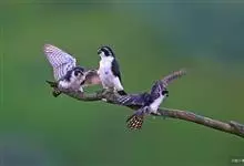 红腿小隼是隼形目隼科小隼属鸟类。红腿小隼前额白色,眼上有一宽阔的白色眉纹,往后经耳覆羽与上背白色领圈相连颊和耳覆羽白色,从眼前开始有一粗的黑色贯眼纹经眼斜向下到耳;其余上体包括翅和尾黑色,…全部>>