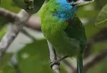 蓝喉拟啄木鸟,是须鴷科、拟啄木鸟属的鸟类。蓝喉拟啄木鸟为小型鸟类,体长20-23厘米。前额至头顶鲜红色,其上有一宽阔的黑色横带,将此红色分为前后二块;头侧、颏、喉蓝色,下喉两侧各具一红色点斑。…全部>>