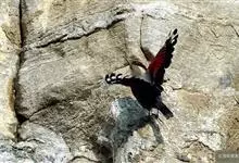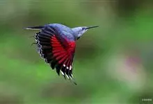 红翅旋壁雀:体重15-23克,体长120-178毫米。是一种体型略小的鸟类。尾短而嘴长,翼具醒目的绯红色斑纹。飞羽黑色,外侧尾羽羽端白色显著,初级飞羽两排白色点斑飞行时成带状。繁殖期雄鸟脸及喉黑色,…全部>>