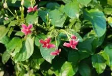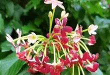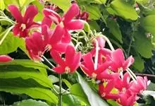 使君子 Jongkind)是使君子科、使君子属攀援灌木,叶对生,椭圆形,两面均被灰白色柔毛。穗状花序,倒挂下垂。花期夏秋。果有五棱,熟时黑色,种子白色。分布于印度、缅甸、菲律宾和中国。喜温润,深根性,…全部>>