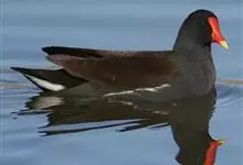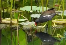 黑水鸡:是鹤形目、秧鸡科的鸟类,共有12个亚种。中型涉禽,体长24-35厘米。嘴长度适中,鼻孔狭长;头具额甲,后缘圆钝;嘴和额甲色彩鲜艳。翅圆形,第2枚初级飞羽最长,或第2枚和第3枚初级飞羽等长,…全部>>