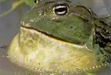 牛蛙,是蛙科、牛蛙属的养殖水产品动物,鸣声很大,远闻如牛叫而得名。牛蛙个体硕大,雌蛙体长达20厘米,雄蛙18厘米,最大个体可达2千克以上。头部宽扁,口端位,吻端尖圆面钝眼球外突,分上下两部分,…全部>>