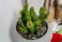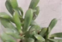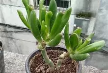 筒叶花月,是景天科青锁龙属的多年生草本植物。植株多分株,灌木状,茎较粗壮,圆柱形,表皮灰褐色;叶片肉质,互生,呈圆筒状,簇生于茎或分枝顶端,叶端呈斜截形,截面为椭圆形;花呈星状,淡白色;花期秋季。…全部>>