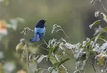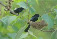 发冠卷尾是中型鸟类,体长28-35厘米。通体绒黑色缀蓝绿色金属光泽,额部具发丝状羽冠,外侧尾羽末端向上卷曲。栖息于海拔1500米以下的低山丘陵和山脚沟谷地带,多在常绿阔叶林、次生林或人工松林中活动。…全部>>