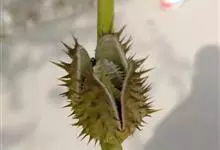 曼陀罗,茄科曼陀罗属一年生大型草本植物,全株光滑。有臭气;叶呈广卯形,边缘具不规则波状浅齿裂;花单生于枝杖间或叶腋,直立,有短梗;花萼是筒状裂片三角形,颜色为白色或淡紫色;果实为蒴果卵状,…全部>>