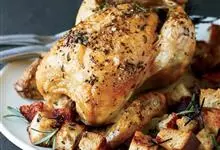 烤鸡,是一道中餐菜肴。主要原料有鸡肉、盐、味精、葱姜蒜、五香八角等。制作者可依据自己的口味添加不同的调料制作各种口味的烤鸡。但烤鸡较为油腻,…全部>>
