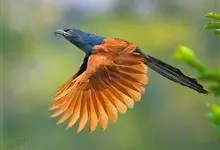 褐翅鸦鹃,是鹃形目鸦鹃科鸦鹃属的鸟类。褐翅鸦鹃的身体为黑色;头颈和胸带蓝紫色金属光泽并具黑亮的羽干纹,下胸至腹部泛金属绿光泽;两翼和肩部为棕栗色,外侧飞羽具暗色羽端,尾羽闪铜绿色光泽;虹膜赤红色,…全部>>