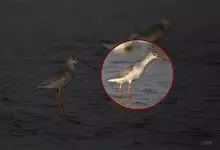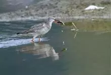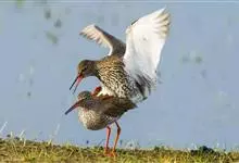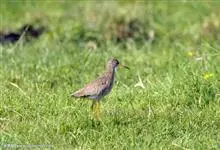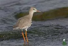 红脚鹬:体长28厘米,上体褐灰,下体白色,胸具褐色纵纹。飞行时腰部白色明显,次级飞羽具明显白色外缘。尾上具黑白色细斑。虹膜黑褐色,嘴长直而尖,基部橙红色,尖端黑褐色。脚较细长,亮橙红色,…全部>>