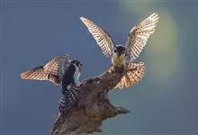 红腿小隼是隼形目隼科小隼属鸟类。红腿小隼前额白色,眼上有一宽阔的白色眉纹,往后经耳覆羽与上背白色领圈相连颊和耳覆羽白色,从眼前开始有一粗的黑色贯眼纹经眼斜向下到耳;其余上体包括翅和尾黑色,…全部>>