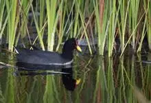 黑水鸡:是鹤形目、秧鸡科的鸟类,共有12个亚种。中型涉禽,体长24-35厘米。嘴长度适中,鼻孔狭长;头具额甲,后缘圆钝;嘴和额甲色彩鲜艳。翅圆形,第2枚初级飞羽最长,或第2枚和第3枚初级飞羽等长,…全部>>