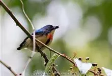 红胸啄花鸟:体重5-10克,体长60-92毫米。体形纤小。雄鸟上体呈辉亮的金属绿色;下体棕黄,胸部具一朱红色块斑,极易与其他啄花鸟区别。雌鸟上体呈橄榄绿,下体棕黄色。虹膜褐色,嘴褐黑色或角灰色,…全部>>
