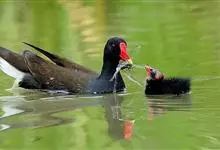 黑水鸡:是鹤形目、秧鸡科的鸟类,共有12个亚种。中型涉禽,体长24-35厘米。嘴长度适中,鼻孔狭长;头具额甲,后缘圆钝;嘴和额甲色彩鲜艳。翅圆形,第2枚初级飞羽最长,或第2枚和第3枚初级飞羽等长,…全部>>