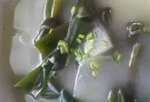 豆腐海带汤是一道色香味俱全的传统名肴,属于北京菜。将豆腐切丁,菠菜切段,海带切丝;锅内放入开水,加豆腐丁、海带丝、葱花;水沸放菠菜;煮片刻加盐、味精、胡椒粉、香油即盛入碗内。全部>>