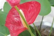 花烛,别名红鹅掌、红掌、安祖花等,为天南星科花烛属的一种多年生草本植物。其茎矮;叶互生,叶片革质,有光泽,阔心形、圆心形,先端钝或渐尖,基部深心形;肉穗花序有细长花序梗,佛焰苞深红色或橘红色,…全部>>