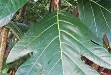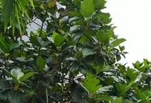 面包树 Fosberg)是桑科波罗蜜属植物。叶大,成熟之叶羽状分裂,表面深绿色,背面浅绿色;穗状花序单生叶腋,雄花序长圆筒形至长椭圆形或棒状;聚花果倒卵圆形或近球形;花期为3~5月,果期为7~10月。…全部>>