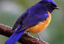 棕胸蓝姬鹟:属小型鸣禽,体长10-13厘米,体重6-10克,是一种体型很小的灰蓝及棕色鹟,雌雄羽色不同,雄鸟羽色艳丽,雌鸟羽色暗淡。雄鸟上体深蓝色,胸橙黄色,下腹灰白色。亚成鸟具褐色斑驳。…全部>>