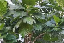 面包树 Fosberg)是桑科波罗蜜属植物。叶大,成熟之叶羽状分裂,表面深绿色,背面浅绿色;穗状花序单生叶腋,雄花序长圆筒形至长椭圆形或棒状;聚花果倒卵圆形或近球形;花期为3~5月,果期为7~10月。…全部>>