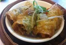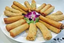 腐皮卷素菜是一道广东省的传统名菜,属于粤菜系。把香菇用清水浸软,去蒂,切细丝,胡萝卜,榨菜分别洗净,切细丝,豆芽,韭黄分别洗净,韭黄切段。用2汤匙油爆香姜丝,胡萝卜,榨菜,放入香菇同炒透,将豆芽放入…全部>>