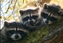 浣熊:食肉目、浣熊科的一种哺乳动物,成年体长40-65厘米,尾长20-40厘米,体重4-10千克,雄性稍大于雌性。体型较小。面部有黑色眼斑,形象滑稽,绰号“蒙面大盗”;尾部有5到7条黑白相间的环纹。…全部>>