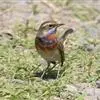 蓝点颏亦称“蓝喉歌鸲”,通称蓝靛颏儿。身体大小和麻雀相似,体长12-13厘米,体重17-18克。头部、上体主要为土褐色。眉纹白色。尾羽黑褐色,基部栗红色。颏部、喉部辉蓝色,下面有黑色横纹。下体白色。…全部>>