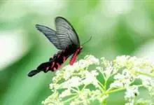 玉斑凤蝶Papilio helenus 别名白纹凤蝶,是凤蝶科凤蝶属美凤蝶亚属大型种类。雌雄同型;体翅皆黑色,后翅正面中室外有3个并列的白色斑,亚外缘有1列模糊的新月形红色斑,…全部>>