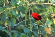 普通朱雀是雀形目雀科朱雀属鸟类,又名红朱雀、马料、青麻料。雄鸟上体红色,下体淡红色;头部、喉部、胸部及腰部亮红色;背部褐色染红色;两翼及尾黑褐色,羽缘染红色。雌鸟上体橄榄褐色,下体近白色,…全部>>