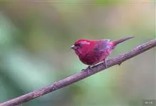 酒红朱雀小型鸟类,体长13~15厘米。雄鸟通体深红色,头部深朱红或棕红色,下背和腰玫瑰红色,眉纹粉红色而具丝绢光泽。两翅和尾黑褐或灰褐色、具暗红色狭缘,内侧两枚三级飞羽具淡粉红色先端。…全部>>