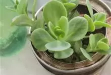 子持莲华 Hara)是景天科瓦松属多年生肉质草本植物。茎葡富,可萌生侧芽、易群生,叶片呈半圆形或长卵形,排列如莲座状、蓝绿色,表面略有白粉,…全部>>