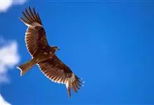 黑鸢:是鹰科、鸢属的一种中型猛禽,共有5个亚种。体长54-69厘米。上体暗褐色,下体棕褐色,均具黑褐色羽干纹,尾较长,呈叉状,具宽度相等的黑色和褐色相间排列的横斑;飞翔时翼下左右各有一块大的白斑。…全部>>