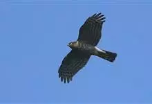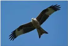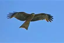 黑鸢:是鹰科、鸢属的一种中型猛禽,共有5个亚种。体长54-69厘米。上体暗褐色,下体棕褐色,均具黑褐色羽干纹,尾较长,呈叉状,具宽度相等的黑色和褐色相间排列的横斑;飞翔时翼下左右各有一块大的白斑。…全部>>