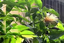 瓜栗 Walp. ),俗称发财树,木棉科小乔木,高4-5米,树冠较松散,幼枝栗褐色,无毛。小叶具短柄或近无柄。花单生枝顶叶腋;花梗粗壮,被黄色星状茸毛,脱落;萼杯状,近革质;花瓣淡黄绿色,狭披针形…全部>>