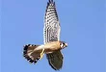 红隼:是隼科、隼属的小型猛禽之一。体重173-335克,体长305-360毫米。翅狭长而尖,尾亦较长,外形和共同爪隼非常相似。雄鸟头蓝灰色,背和翅上覆羽砖红色,具三角形黑斑;腰、尾上覆羽和尾羽蓝灰色,…全部>>