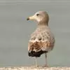 灰翅鸥,夏羽头、颈、腰、尾白色;肩、背和翅上覆羽鸽灰色。冬羽和夏羽相似,但头和颈具淡褐色纵纹,有时扩展至上胸。嘴黄色,下嘴先端具红斑;幼鸟嘴黑色。脚粉红色。栖息于海岸:悬岩,海滨沙滩于近海海岛上。常…全部>>