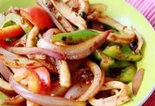 爆炒鱿鱼,是用鱿鱼制作的一道家常菜。鱿鱼有少量的脂肪和碳水化合物,含有大量的胆固醇,…全部>>