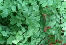 铁线蕨,铁线蕨科铁线蕨属多年生草本植物,其根状茎横走,披棕色披针形鳞片;叶片卵状三角形,顶端钝圆并有细锯齿,叶脉扇状分叉;孢子囊群生于囊群盖下面;无花,以孢子繁殖花色;分株繁殖为主,生长期均可,…全部>>