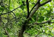 大果榕是桑科榕属的小乔木,株高可达10米;幼枝被柔毛;叶互生,宽卵状心形或近圆形;雄花无梗、匙形、花丝长,雌花生于雌株榕果内,子房白色;榕果簇生于树干基部或老茎短枝上、扁球形或陀螺形,…全部>>