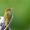 普通缝叶莺,是雀形目鹅科莺亚科缝叶莺属一种。体长10-14厘米,体重7-10克,雄鸟前额棕红,头顶至枕棕橄榄褐,上体橄榄绿染黄,飞羽及尾羽暗褐;繁殖期雄鸟的中央尾羽特形延长,下体淡皮黄白色。…全部>>