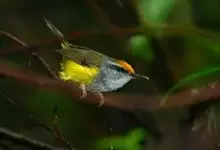 黄腹鹟莺为鹟科鹟莺属的鸟类。属于体长11厘米而腹部黄色的莺。具醒目的白色眉纹,前顶冠灰色,头后及背部绿橄榄色,颏、喉及上胸白色;下体余部黄色。分布于喜马拉雅山脉东段、中国南方、东南亚及大巽他群岛。…全部>>