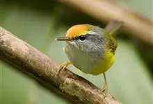金头伪缝叶莺:体长10-12厘米,是一种体型小的棕顶冠、黄色腹森林莺类。头顶亮黄色,具明显的黄色眉纹,头侧、后颈和颈侧暗灰色,上体橄榄绿色,颏、喉及上胸部灰白,下胸及腹部为鲜艳黄色。两翅和尾褐色,羽…全部>>