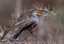 花彩雀莺:体长9-12厘米,是一种毛茸茸偏紫色的雀莺。顶冠棕色,眉纹白。尾长,羽毛松软。前额有一宽阔的眉纹淡黄色,头顶栗色或棕红色,有的具紫蓝色光泽。背灰色,腰和尾上覆羽辉紫蓝色,飞羽灰褐色。…全部>>