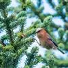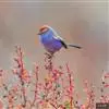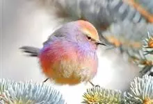 凤头雀莺:小型鸟类。体长9-10厘米,雄鸟呈毛茸茸的紫色和绛紫色,顶冠淡紫灰色,额及凤头白色,尾全蓝。雌鸟喉及上胸白,至臀部渐变成淡紫色,耳羽灰,…全部>>