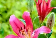 山丹是百合科百合属的多年生草本植物。鳞茎卵形或圆锥形,鳞片长圆形或长卵形,白色;叶散生茎中部,线形,边缘有乳头状突起;花单生或数朵成总状花序,花鲜红色,常无斑点,花被片反卷,…全部>>
