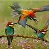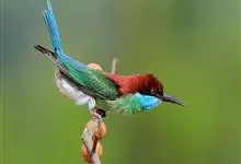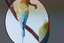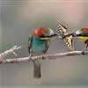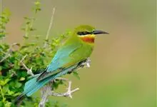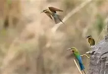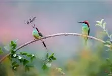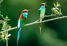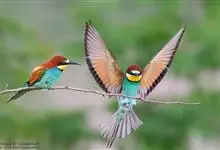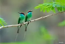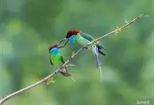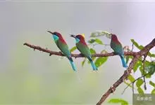 蓝颊蜂虎:是蜂虎科、蜂虎属的鸟类,共有2个亚种。体长27-33厘米,翼展46-49厘米,体重38-50克。嘴形细长而下弯,先端尖,…全部>>
