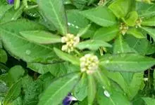 猩猩草:常绿或半常绿灌木,盆栽时株高0.5米-2米,在亚热带地区可长到6米以上。茎直立而光滑,单叶互生,卵状椭圆形至阔披针形,具不规则的深缺刻。长10-15厘米。花小,有蜜腺,排列成密集的伞房花序。…全部>>