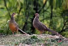 雉鸡:鸟纲、雉科、雉属的一种走禽,共有30个亚种。体形较家鸡略小,但尾巴却长得多。雄鸟和雌鸟羽色不同,雄鸟羽色华丽,多具金属反光,头顶两侧各具有一束能耸立起而羽端呈方形的耳羽簇,…全部>>
