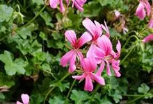 蔓性天竺葵学名盾叶天竺葵 Ait.)是牻牛儿苗科天竺葵属植物。多年生攀缘或缠绕草本,长40-100厘米,茎具棱角,多分枝,叶互生,略呈肉质,伞房花序腋生,有花数朵,花冠洋红色,上面2瓣着深色条纹,…全部>>