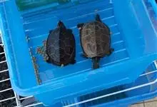黑颈乌龟是龟鳖目淡水龟科乌龟属爬行动物;别名广东乌龟、广东草龟、黑点龟、黑颈水龟。黑颈乌龟体形较大,头较大,吻钝,略突出于上喙。头顶部黑色,侧面有黄绿色条纹;背甲黑色或棕褐色;中央有一条明显的脊棱,…全部>>