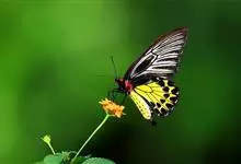 金裳凤蝶是凤蝶科、裳凤蝶属的动物。金裳凤蝶身体呈黑色,头、颈和胸侧有红毛,腹部有黑黄两色相间条纹,雄蝶前翅黑色,具黑天鹅绒光泽,各脉两侧灰白色,后翅金黄色,各室外缘有等腰三角形黑斑1枚,斑内侧有晕,…全部>>