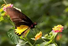 荧光裳凤蝶是凤蝶科裳凤蝶属的一种大型蝴蝶,该物种共有3个亚种。该蝶飞翔的时候姿态优美,前翅黑色,后翅金黄色和黑色交融的斑纹在阳光照射下金光灿灿,显得华贵美丽。幼虫寄主为多种马兜铃属的植物,取食马兜铃…全部>>
