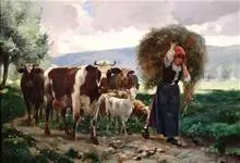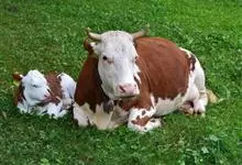 西门塔尔牛是偶蹄目牛科牛属哺乳动物。 体躯长,呈圆筒状,肌肉丰满;头较长,面宽,颈长中等,角较细而向外上方弯曲,尖端稍向上;前躯较后躯发育好,胸深,尻宽平,四肢结实,大腿肌肉发达,乳房发育好。…全部>>